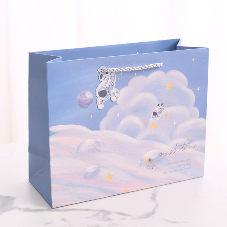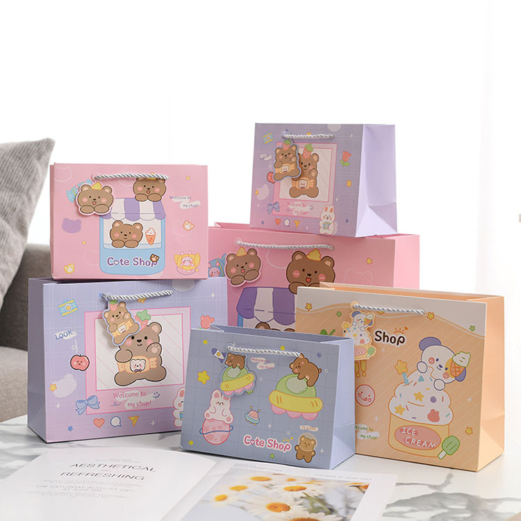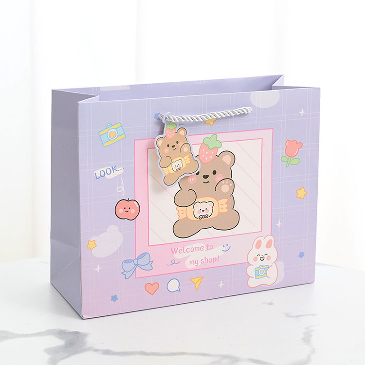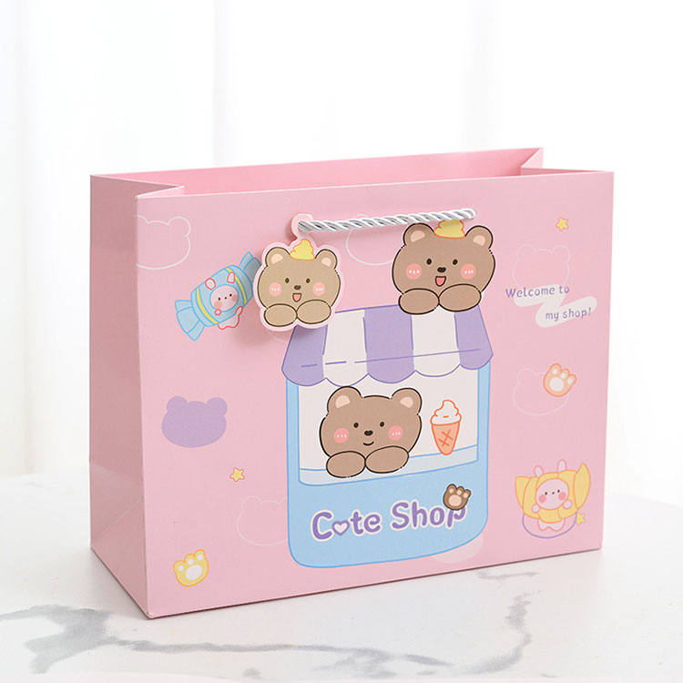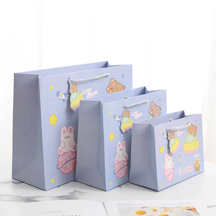 Ang hawakan ng Cartoon Gift Paper ay idinisenyo upang palakasin, angkop ito para sa maraming okasyon, tulad ng mga tindahan ng regalo, mga tindahan ng laruan, mga tindahan ng damit ng mga bata, tindahan ng sapatos ng mga bata, mga department store at mga tindahan ng mga gamit ng sanggol.