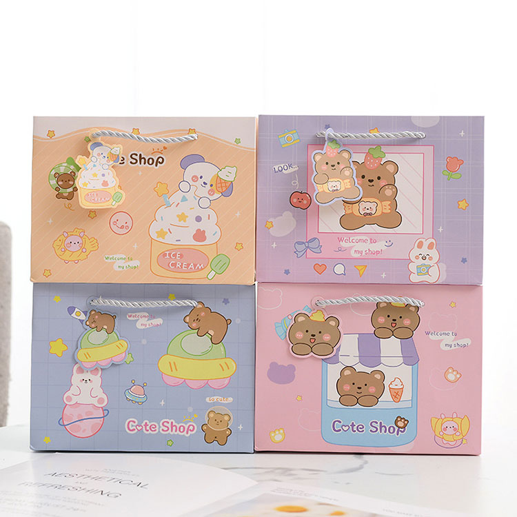Ang mga laki ngCartoon Gift Paper Bag ay19.5*8.5*14.5cm,24.5*9.5*19.5cm at32*11.5*25cm. Tumatanggap din kami ng mga custom na laki.