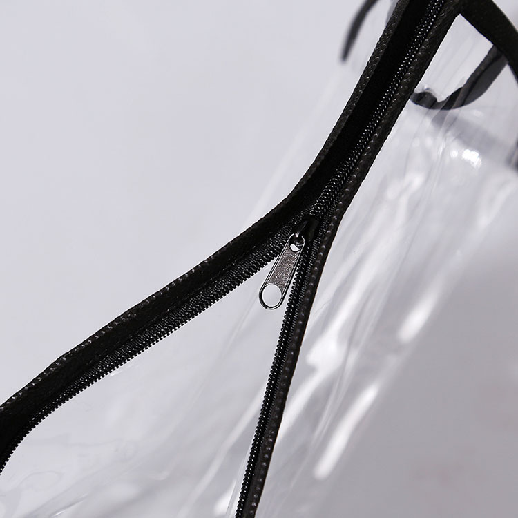 Ang Clear Zipper Cosmetic Bag ay pangunahing gawa sa mataas na kalidad na PVC. Gumagamit ito ng disenyo ng siper, na makinis, madaling buksan at isara at angkop sa mahabang panahon; Ang bag ay maaaring maglaro ng isang tiyak na papel na hindi tinatablan ng tubig, ngunit dahil sa siper, hindi ito magagamit bilang isang ganap na hindi tinatagusan ng tubig na bag.