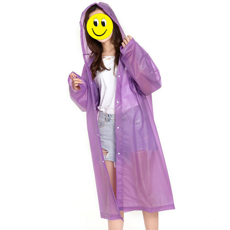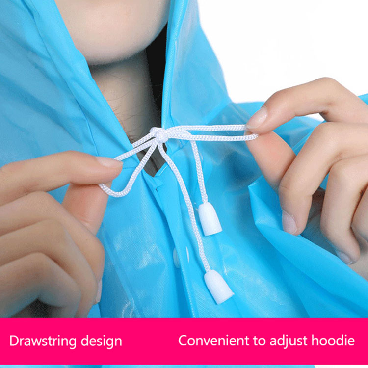 Ang EVA raincoat na ito ay perpekto para sa lahat ng aktibidad sa labas, kung ikaw ay mamasyal o dadalo sa labas o sinumang gustong manatiling tuyo sa panahon ng tag-ulan. Dagdag pa, na may iba't ibang kulay na mapagpipilian, mahahanap mo ang perpektong tugma para sa iyong istilo. Ang mga araw ng tag-ulan, maaaring umulan at tumigil sandali, ang mga pullover na kapote ay medyo mahirap hubarin at isuot. Ngunit ang kapote na ito na may pindutan ay napaka-maginhawang isuot at alisin. Kung huminto ang ulan, maaari mong buksan ang buton at gamitin ito bilang amerikana. Kung Umuulan, i-fasten lang ang mga butones.