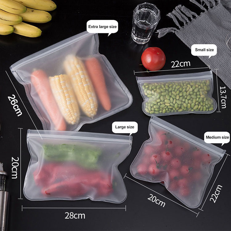 Ito ay isang mahusay na pagpipilian para sa sinumang nagnanais na pahabain ang buhay ng kanilang sariwang ani, ayusin ang kanilang refrigerator o bawasan ang basura ng pagkain. Ang aming mga EVA waterproof bag ay maaaring mag-imbak ng mga pagkain sa refrigerator nang napakahusay at dahil ang kanilang zipper sealing ay napakahusay, maaari nilang epektibong maiwasan ang mga magkakaibang lasa sa pagitan ng mga pagkain.