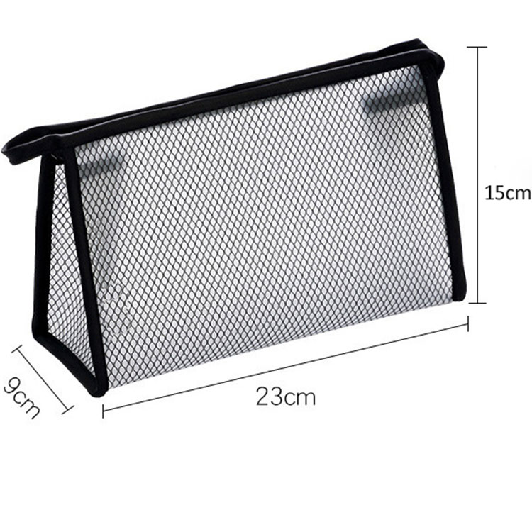 Ang laki ng Mesh Zipper Cosmetic Bag 23*15*9cm . Mayroong dalawang kulay na pipiliin.