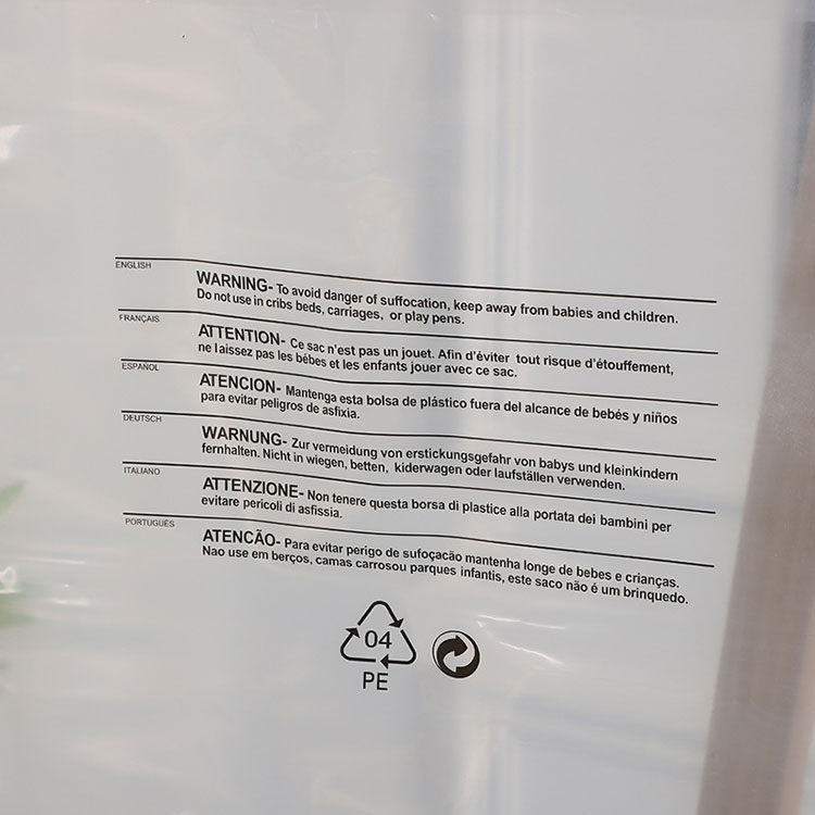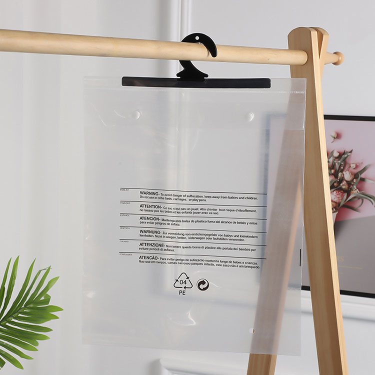 Sa ngayon ay lalong pinahahalagahan ng mga tao ang kanilang pag-promote ng tatak, kaya maraming kumpanya ang kailangang mag-print ng mga logo o babala ng mga slogan sa packaging ng produkto. Bilang paggawa ng PE bag na may mga hanger, hindi lamang namin mako-customize ang pag-print para sa aming mga customer, kundi pati na rin ang mga sukat, kapal at istilo.